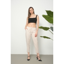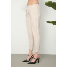 BİLEK BOY İP DETAYLI BELİ LASTİKLİ KUMAŞ PANTOLON