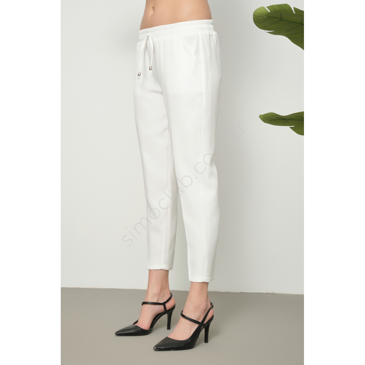 BİLEK BOY İP DETAYLI BELİ LASTİKLİ KUMAŞ PANTOLON