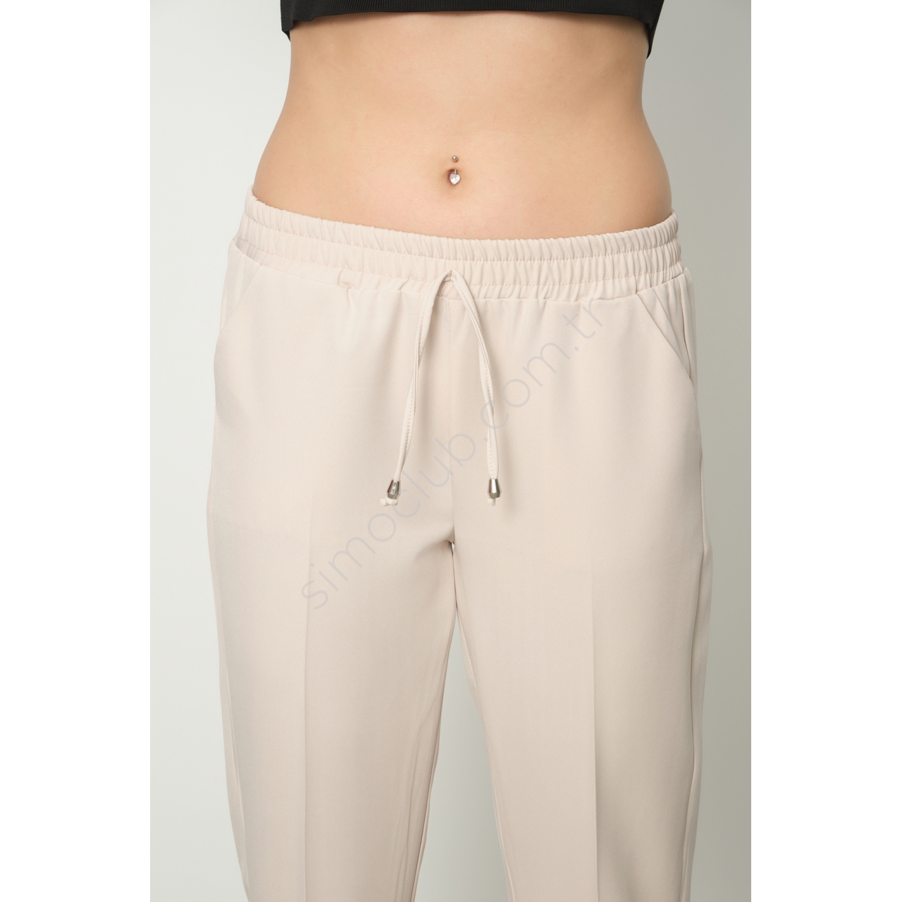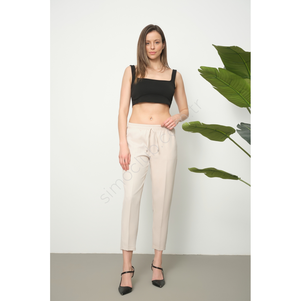 BİLEK BOY İP DETAYLI BELİ LASTİKLİ KUMAŞ PANTOLON