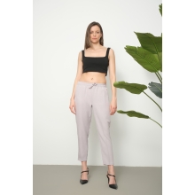 BİLEK BOY İP DETAYLI BELİ LASTİKLİ KUMAŞ PANTOLON