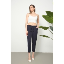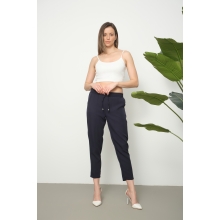 BİLEK BOY İP DETAYLI BELİ LASTİKLİ KUMAŞ PANTOLON