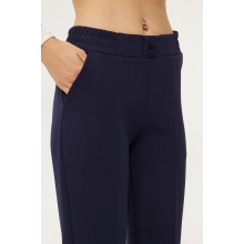 Önde düğme detaylı lastikli bol paça pantolon, her gardıropta olmazsa olmaz bir parça olarak öne çıkıyor. Düz renk tasarımı sayesinde kolayca kombinlenebilir ve şık bir görünüm sunar. Geniş paça kesimi ile modern ve rahat bir siluet oluştururken, çift cepli yapısıyla pratiklik sağlar. Double face dokuması, dayanıklılık ve konforu bir arada sunarak uzun süreli kullanıma uygunluk gösterir. 65% polyester ve 30% pamuk % 5 elastan karışımından oluşan materyali, hafifliği ve nefes alabilirliği ile konforlu