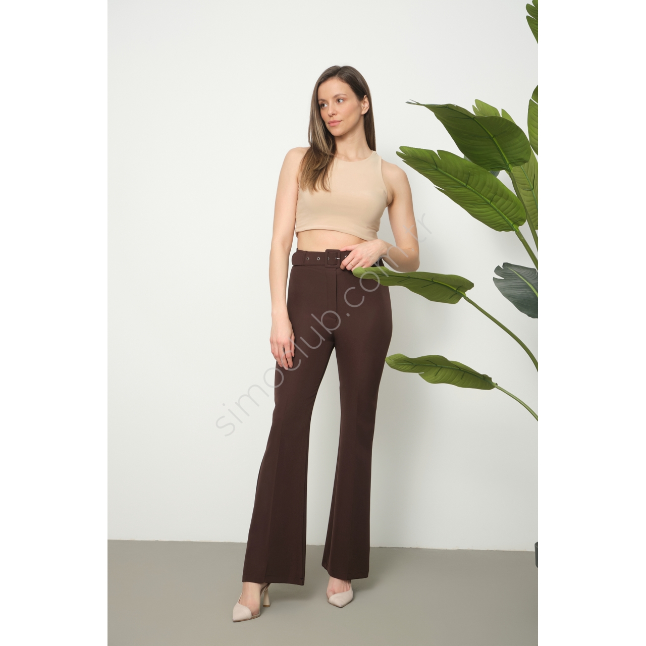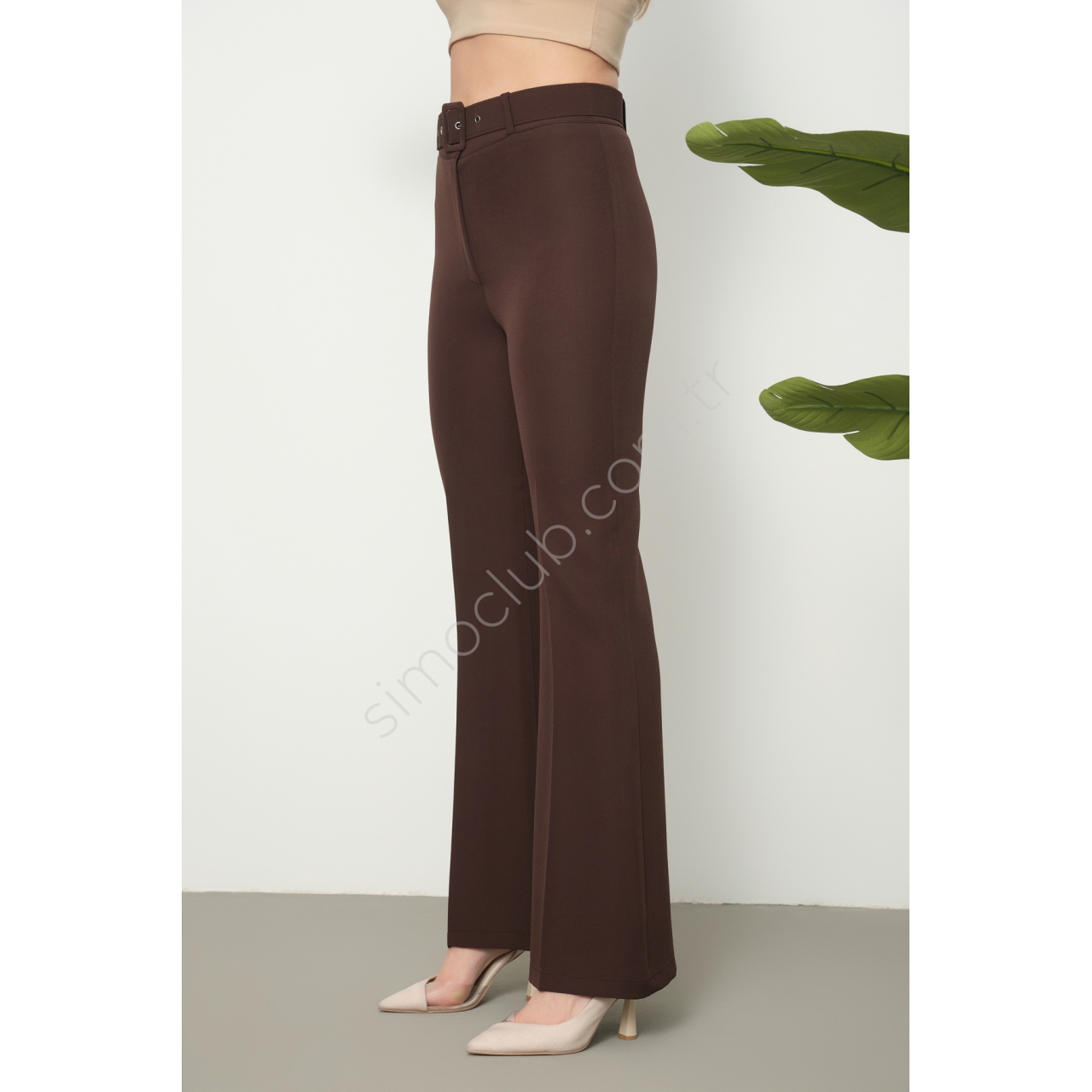 Yüksek bel tasarımı sayesinde konforlu bir kullanım sağlarken, kemer detayı vücut hatlarını zarifçe sarıyor.