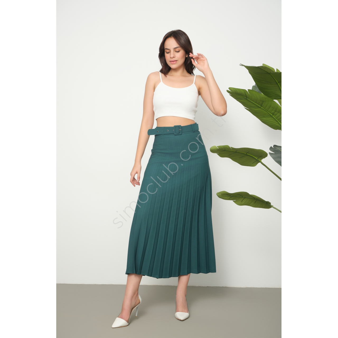 • KEMERLİ PİLİSELİ ETEK                                       Uzun boyu ile zarif bir siluet sunan kadın kemerli piliseli etek, gündüzden geceye her ortama uyum sağlar.