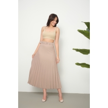 • Astarlı yapısı ile konforlu bir kullanım sunan kadın kemerli piliseli etek, gün boyu rahatlık sağlar.