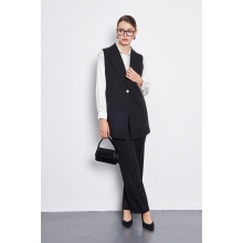 Ofis stilinize tarz bir dokunuş yapmak için fileto cep detaylı, kruvaze, ters yaka, düğmeli uzun yelek ile kumaş pantolonlarınızı kombinleyebilirsiniz! Her yaştan kullanıcıya uygun, orta kalınlıkta ve slim fit kesimle konforlu bir kullanım sunar.