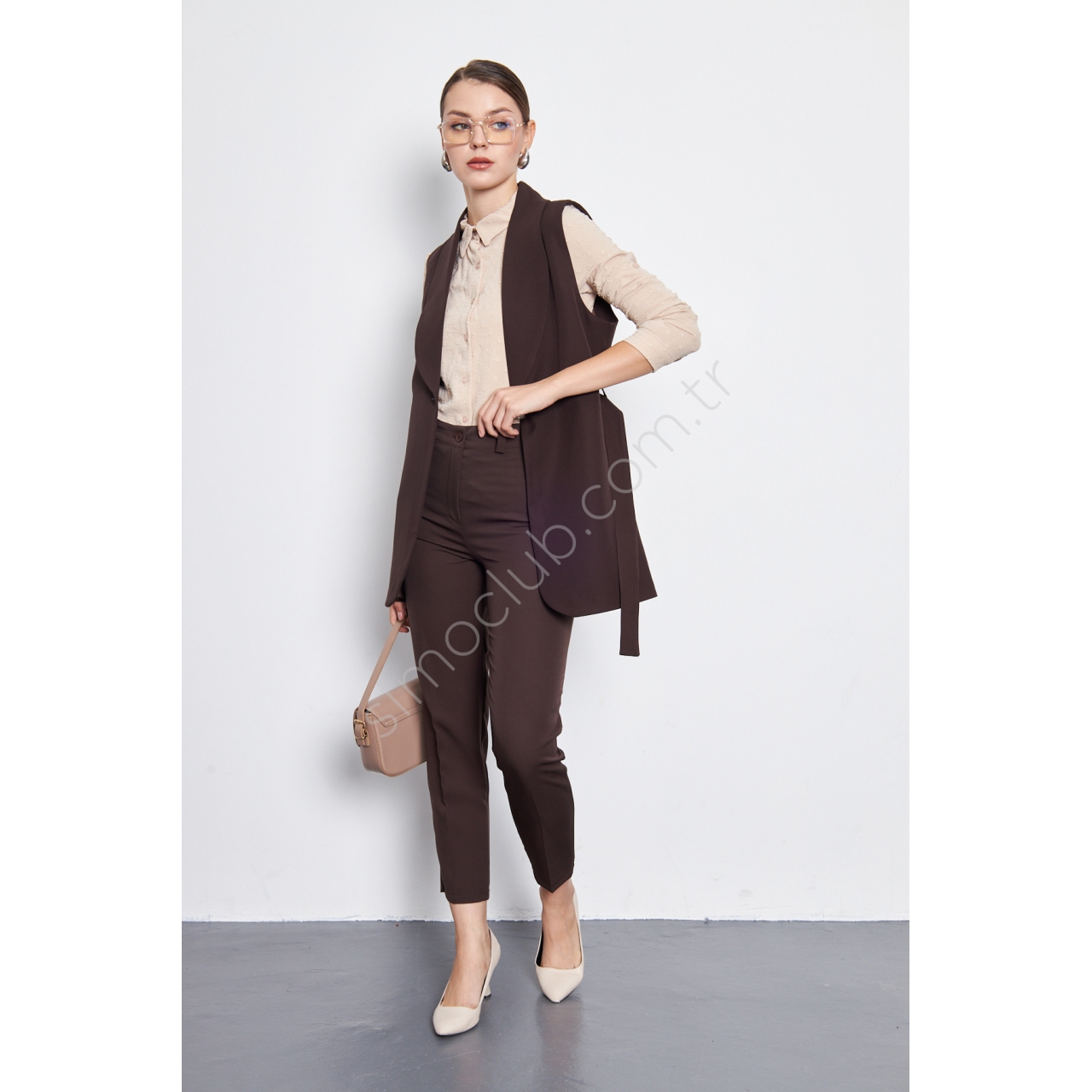 ÖNÜ TEK DÜĞMELİ KUŞAKLI ŞAL YAKA YELEK